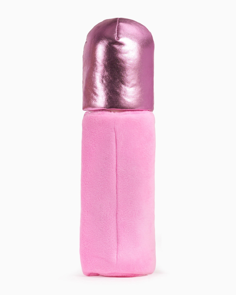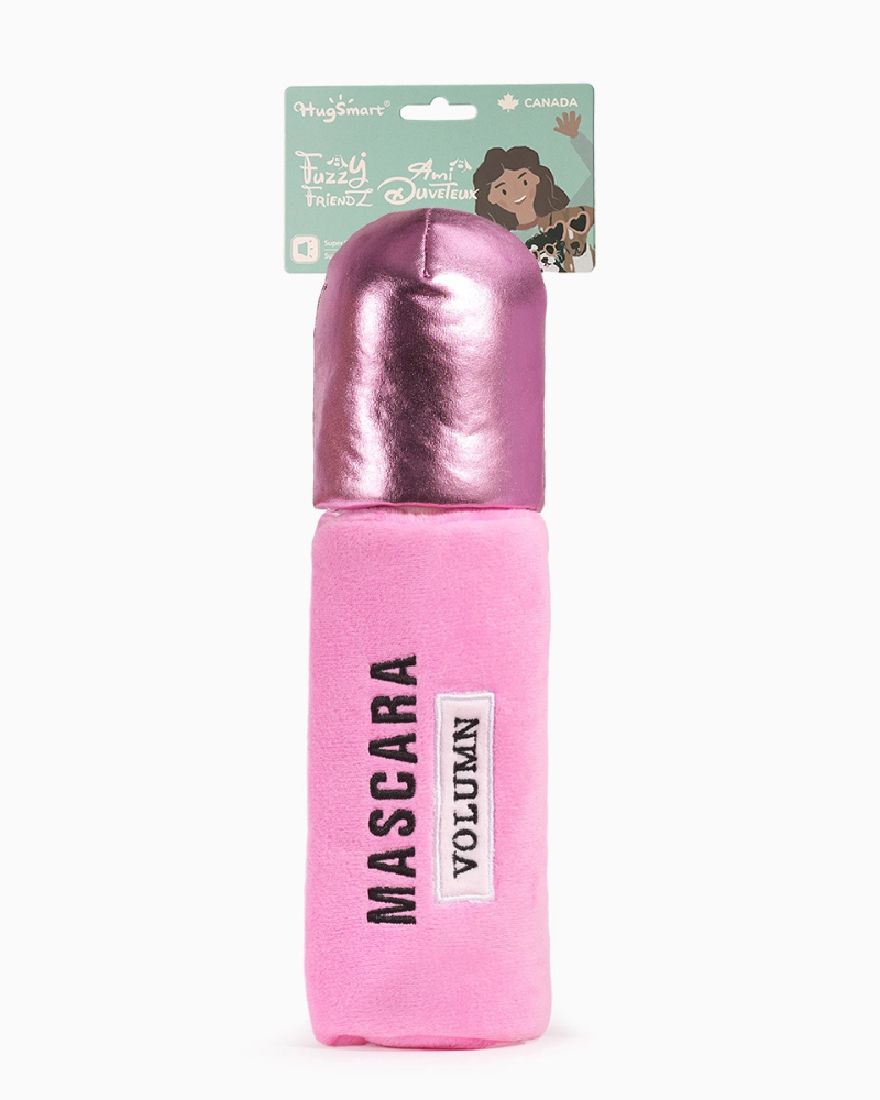 Meet the two-in-one mascara dog toy. The plush crinkly tube hides a squeaky mascara wand that slides in and out for extra fun. Squeakers keep the game going, and the hollow tube lets you hide treats inside for a surprise your pup will love.