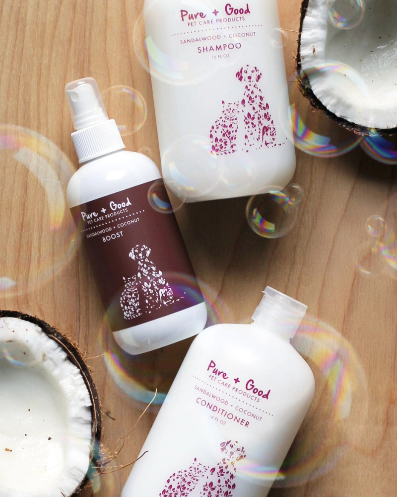 PURE + GOOD's leave-in formula rejuvenates their coat, lifts light odors, and enhances the effects of our complementary shampoo and conditioner.